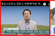학생청원 1천명 이상이면 답변하겠다고 약속한 조희연 교육감이 3일 제1호 답변을 내 놓았다. 8월 20일 대성고 재학생들이 자사고 폐지 문제에 대해 질의한 청원이 1,185여명의 동의를 얻어 그동안 조 교육감의 답변 대기상태에 있었다. 조 교육감의 답변에 대해 보수성향의 교육시민단체인 국가교육국민감시단은 논평을 내고 "조희연 교육감의 교육철학에 일관성이 없다"며 맹비난하는 논평을 발표했다. 국가교육국민감시단은 논평에서 "조교육감이 사안별로 이중잣대를 적용하고 있다"며 "자사고 폐지 문제에서는 절차와 규정을 중시해야 한다고 강조하면서 정작 전교조 법외노조 문제에 대해서는 법원 판결조차 따르지 않고 있다"고 지적했다. 감시단은 논평에서 "학생들은 촛불과 문재인 정부까지 거론하며 직접적인 피해당사자인 학생들이 의사결정과정에서 철저히 배제된 사실에 관해 교육감의 교육철학을 묻고 있으나 조 교육감은 논점을 흐린 채 동문서답만 내 놓았다"고 비판했다. 감시단은 논평에서 "조 교육감이 학생들의 청원을 받아들일 마음이 없으면서도 답변 마지막에 학생들과의 대화를 제안한 것은 위선과 가식"이라며 학생들의 입장에서 볼 때는 기성세대의 꼰대에 불과한 모습으로 자리매김했을 것이라며